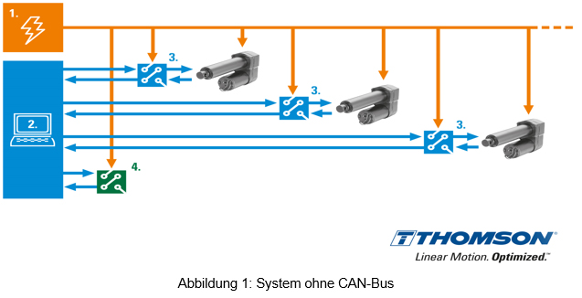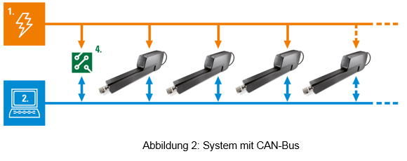 Herkömmliche Elektro-Aktuatoren werden jeweils über eine separate Steuereinheit angesteuert. Durch die Nutzung von Aktuatoren mit integrierter J1939-Unterstützung muss dagegen nur ein einziges Kabel von einer Steuereinheit zu sämtlichen Aktuatoren geführt werden. Jeder Aktuator ist eindeutig adressiert, empfängt alle Signale vom zentralen Steuersystem, reagiert jedoch nur auf diejenigen, die sich auf seine Funktion beziehen. Außerdem liefern diese intelligenten Aktuatoren die wichtigsten Diagnosedaten, die das Steuergerät über ihre Verstellgeschwindigkeit und Stellung informieren, sodass ein höherer Automatisierungsgrad ermöglicht wird.