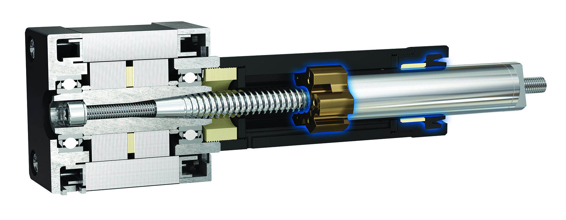 The main components of a traditional motorised lead screw (MLS) are a stepper motor, lead screw and a nut that connects to the load in various ways. When the motor turns the lead screw, the nut and connected load should travel forward or backward to achieve the positioning required for the application. But if that nut is unsecured, it will rotate with the screw and no motion will translate across the axis.