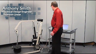 Al Wroblaski, Thomson Linear Actuator Product Line Manager, demonstrates the advantages of Industrial Linear Actuators over hydraulic systems.