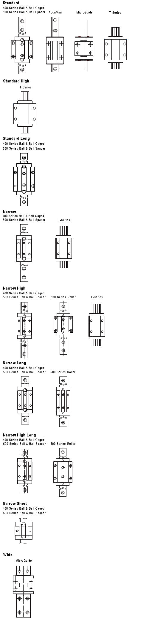 | 400系列滚珠导购/带隔离套的滚珠导轨的分类 | |||||||||