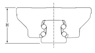 Tolerance describes the tolerance on 'H' as a function of carriage - rail assembly, measured from nominal dimensions.