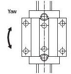 Double backed cylindrical roller arrangement. Highest load capacity, accuracy, and rigidity of profile rail style product.