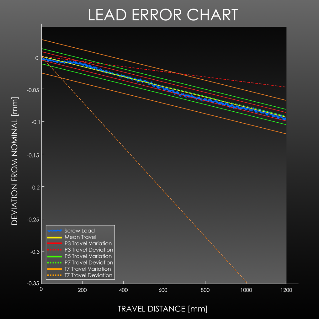 Positional accuracy is a much more valuable metric, and there are two classifications (Transport or Precision) with multiple grades (P0, P3, P5, T5 and T7 to name a few). Applications that require simply translating a load from one point to another use the lower accuracy classification known as “transport grade” (typically ±23µm / 300 mm or higher). Applications requiring knowledge of the absolute position of that load at every point in the stroke without external feedback use the higher “precision grade” accuracy (typically ±23µm / 300 mm or lower). The accuracy designation doesn’t just provide a numerical deviation but also defines the overall accumulation of positional error. Transport grade error is cumulative and linear, whereas precision grade error is controlled and constrained.