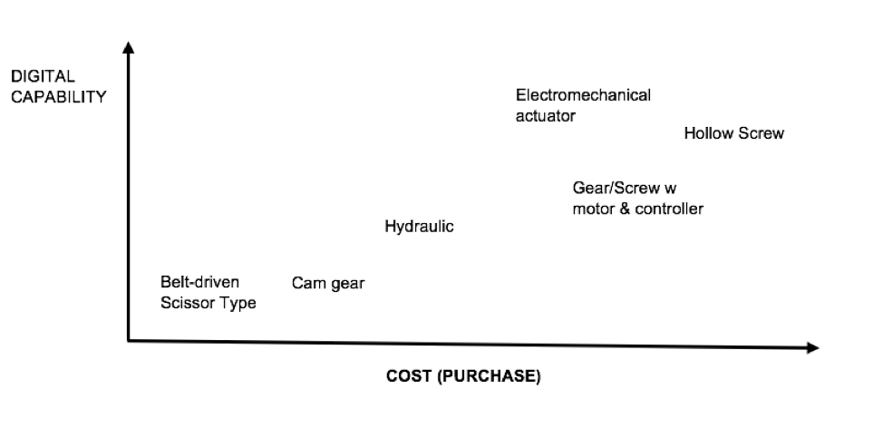 Fig. 3. Comparison of actuation options based on cost and digital capability.