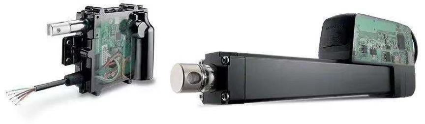 电动推杆内部内集成了电子器件,包括限位开关、位置反馈、同步功能以及总线