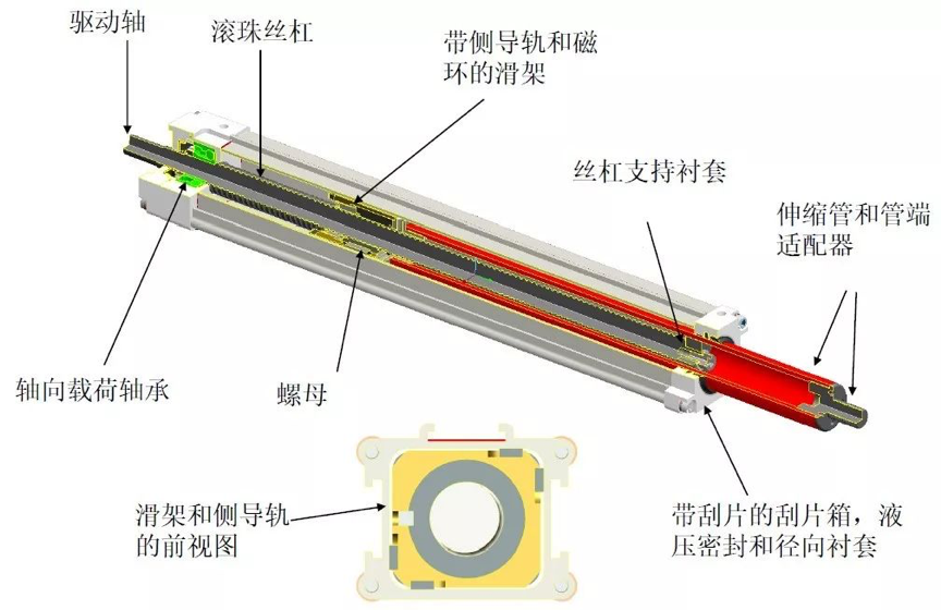 - 内部方形带导轨的螺母,可防止伸缩杆旋转